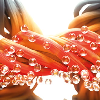 HEATTECH's micron-sized fibres capture the energy of water molecules emitted from the body and convert them into warmth while retaining heat.