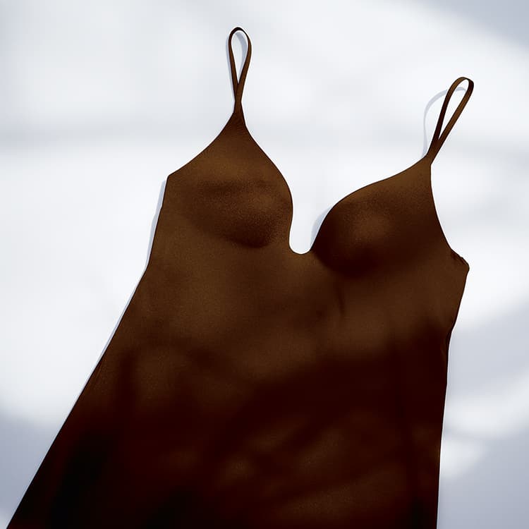 The bra slip, which Kurogouchi points to as a favourite out of all of her collaborations with UNIQLO, is shown here in a new shade of brown. Though similar to past colours, it has key tonal differences.