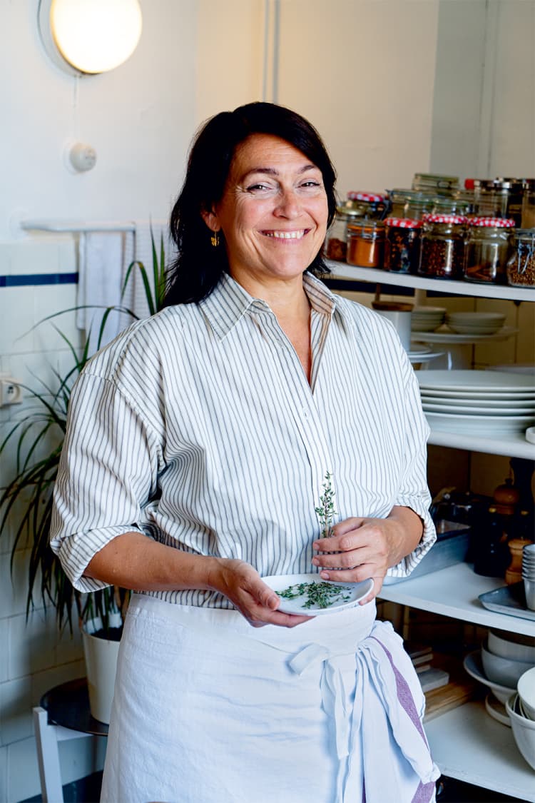Born in 1974 in Antwerp. While managing restaurants and coffee bars, she started her own catering business in 1999. She is a favourite of the fashion world, counting Dries Van Noten and Ann Demeulemeester among her admirers.