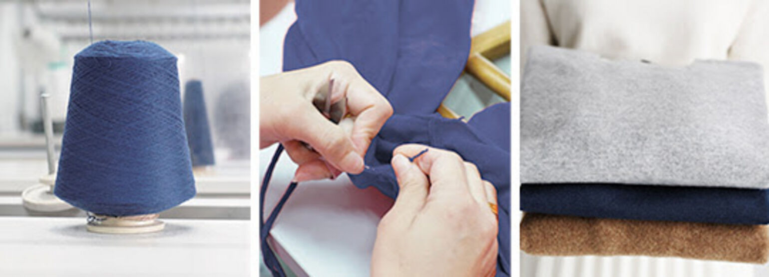 We are committed to quality; all our knitwear is made of premium wool and produced to uncompromising standards, from the selection of raw materials to spinning, dyeing, knitting, washing and inspection.