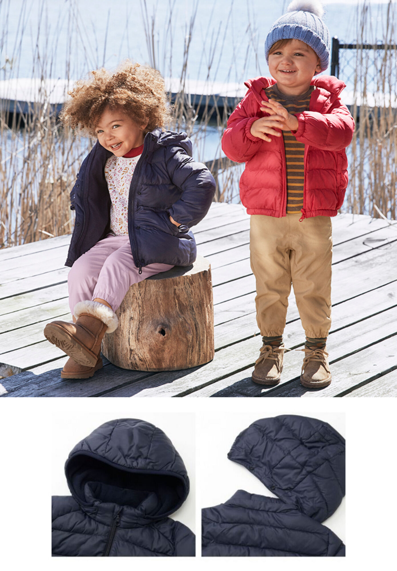 Our lightweight yet super-warm padded jacket is an outdoor essential. Pockets lined with soft tricot fabric keep little hands warm even without gloves.