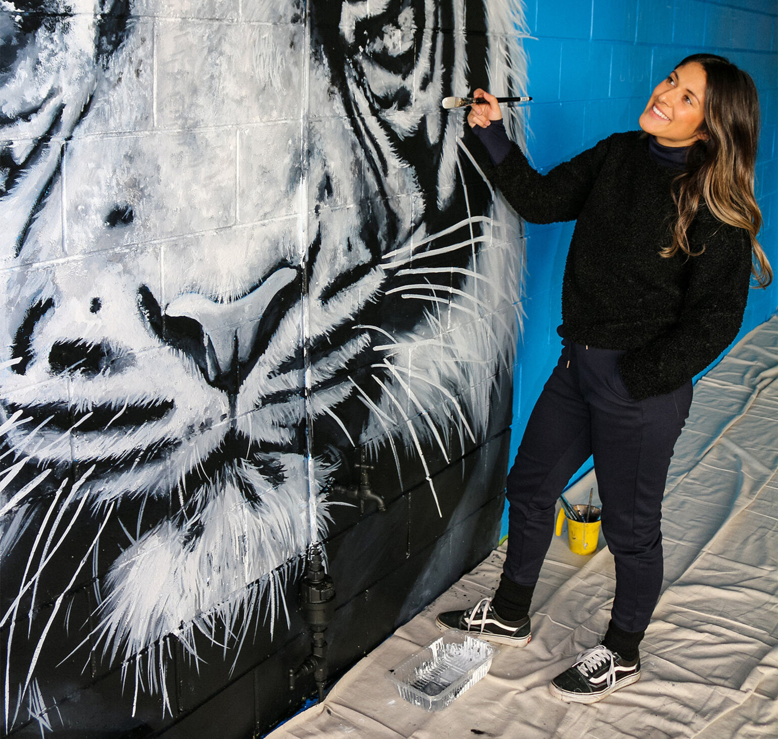 For about the first five years or so I was solely painting canvases and it slowly transitioned into murals. I started on small ones and then I got asked to do more and more and now I'm nine or 10 years into my journey and I've been doing murals for about five years.
