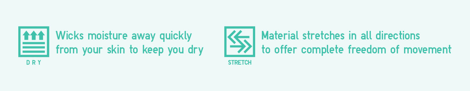 Ultra quick-drying performance fabric, as worn by elite athletes. Instantly wicks away moisture to keep you feeling fresh.