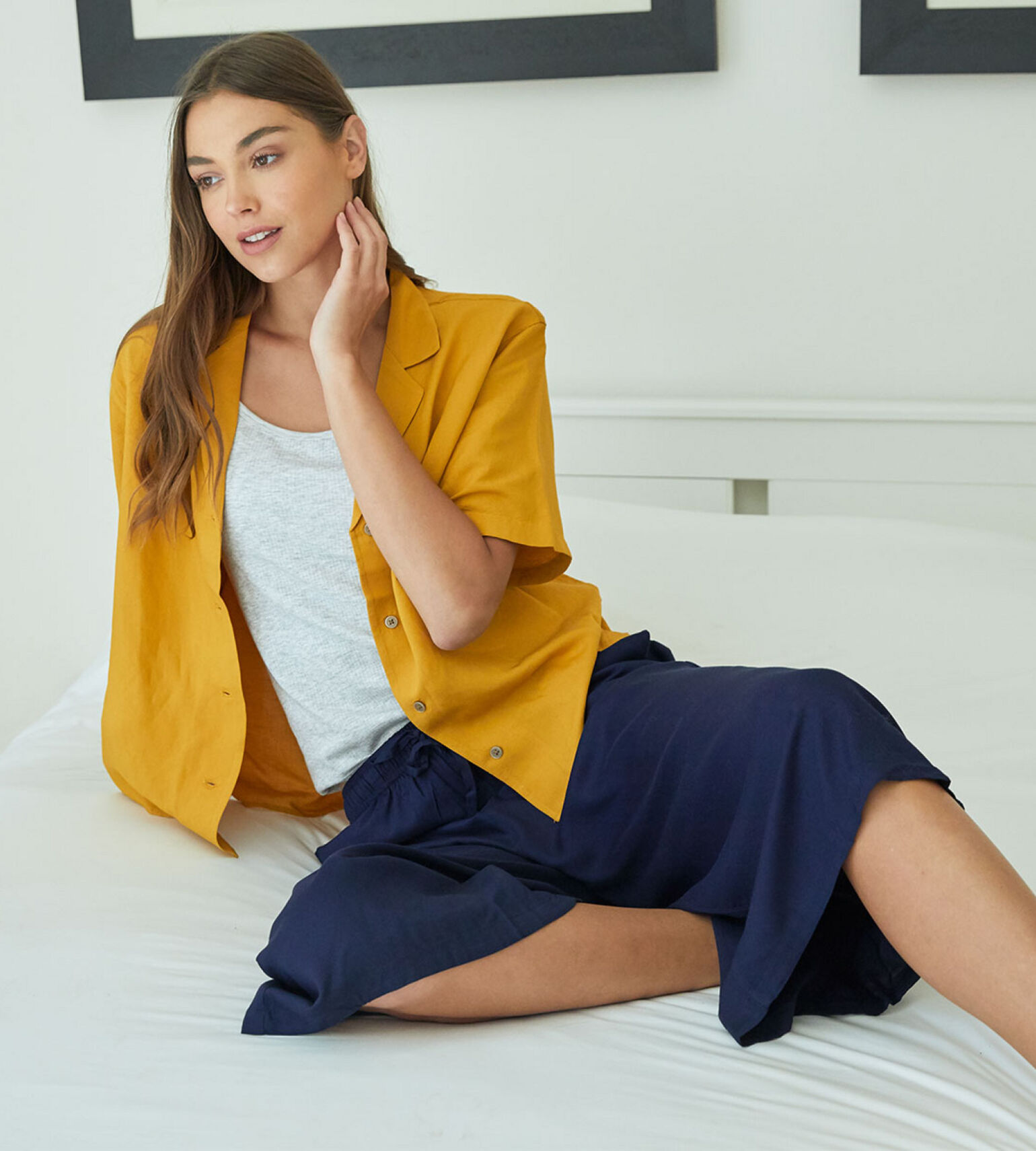 Wearing: Linen Blend Open Collar Short Sleeve Shirt, Relaco 3/4 Shorts