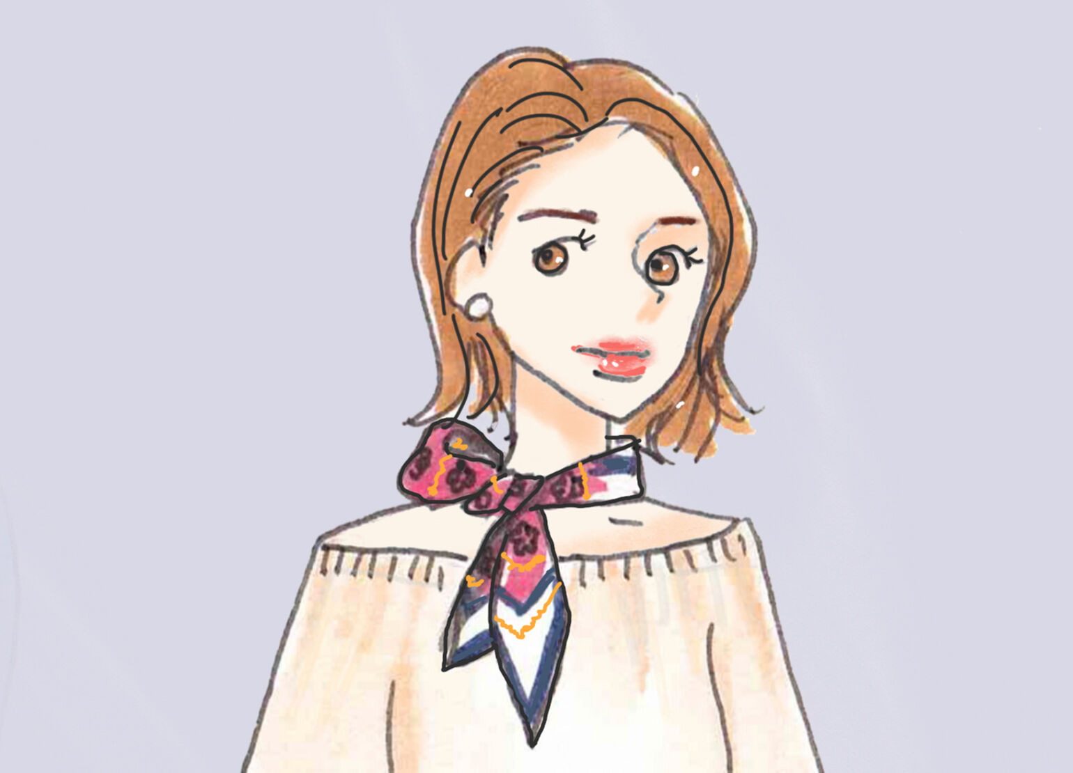 ① Place a bias-folded scarf against your nape. Bring the ends forward.
