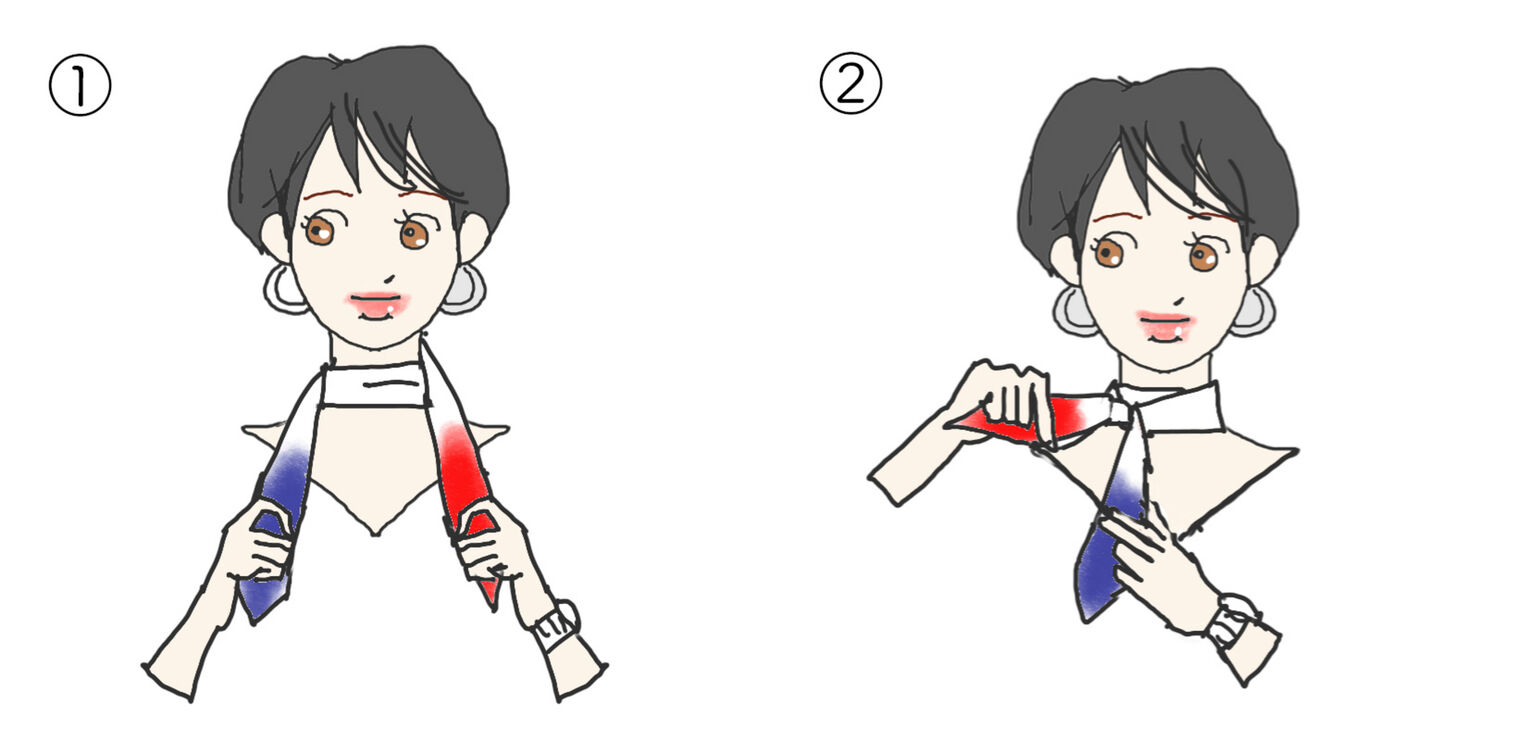 ② Tie the ends at your nape.
